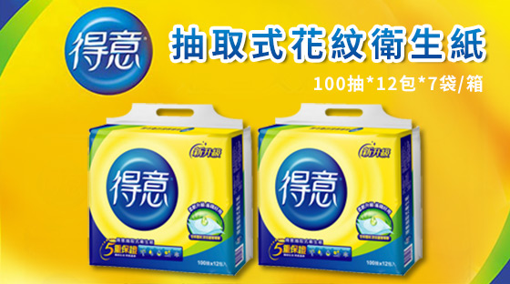 商品訊息簡述: 平均每箱最低只要679元起(含運)即可購得【得意】連續抽取式花紋衛生紙1箱/2箱(100抽x12包x7袋/箱)。輸入現金券,單筆滿500折50,滿1000折130