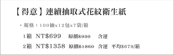 品名:【得意】連續抽取式花紋衛生紙
